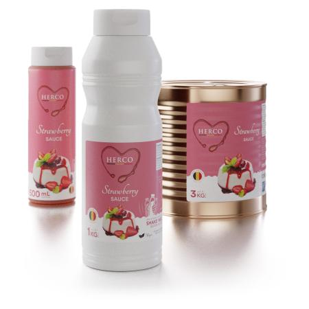 A ready to use sauce made from carefully-selected fruit. This allows you to experience the pure taste and color from fresh strawberries. This strawberry topping can be used all year long and in countless applications. Ideal on frozen yoghurt, ice cream, sorbets, waffles, pancakes and many other desserts. Our strawberry topping is also delicious in combination with chocolate, almond, hazelnut, honey and many other flavors.